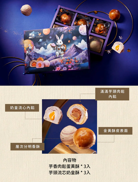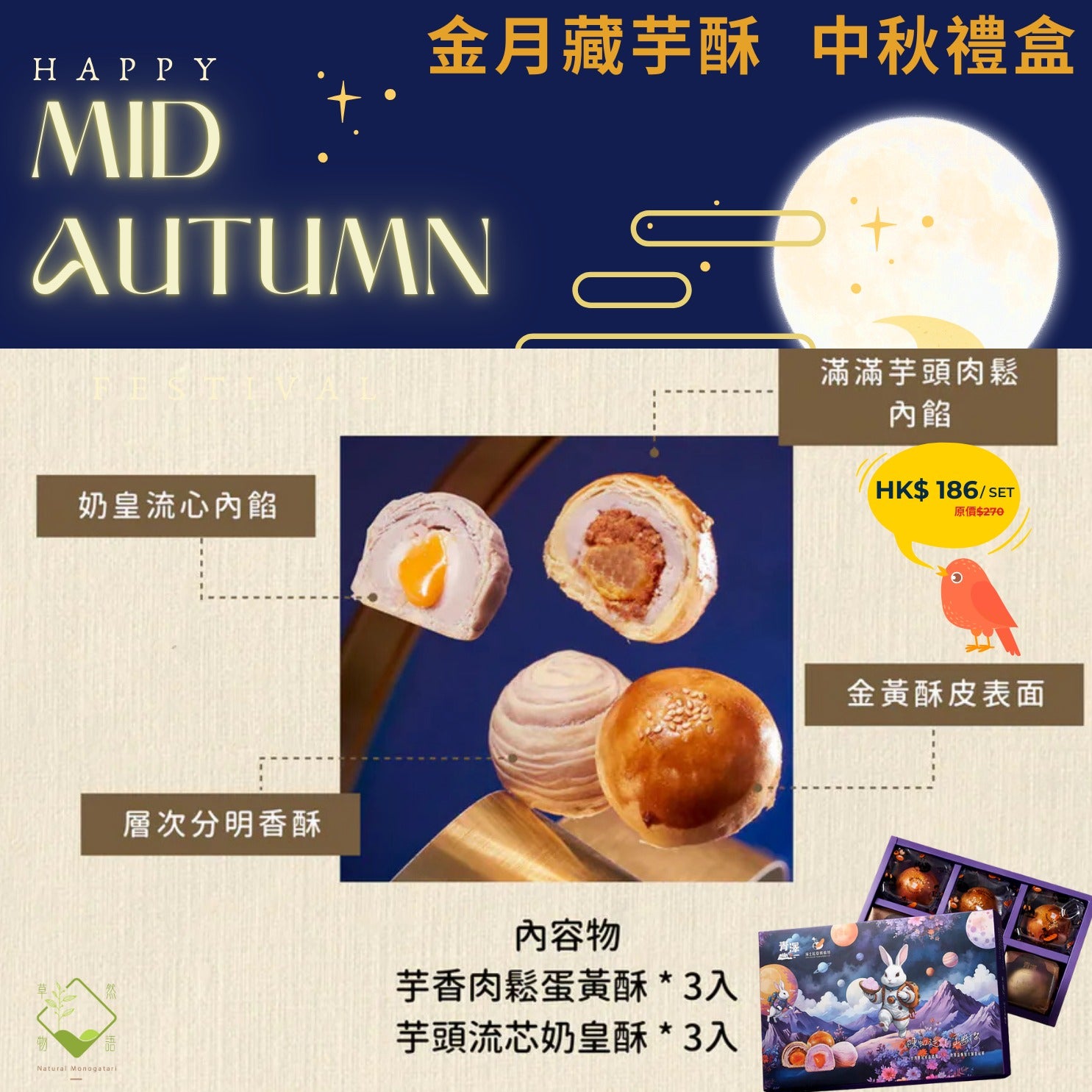 🥮 外層金黃酥皮,香脆鬆化🌰 內餡滿滿芋頭肉鬆+奶皇流心💯 層次豐富,甜而不膩~🎁 送禮自食兩相宜📦 每盒 6 件裝(芋香肉鬆蛋黃酥3 + 芋頭流芯奶皇酥3)💰 限時優惠:HK$186/SET(原價$270)🔥 數量有限,售完即止!👉 DM即刻落單,過個最香甜嘅中秋!