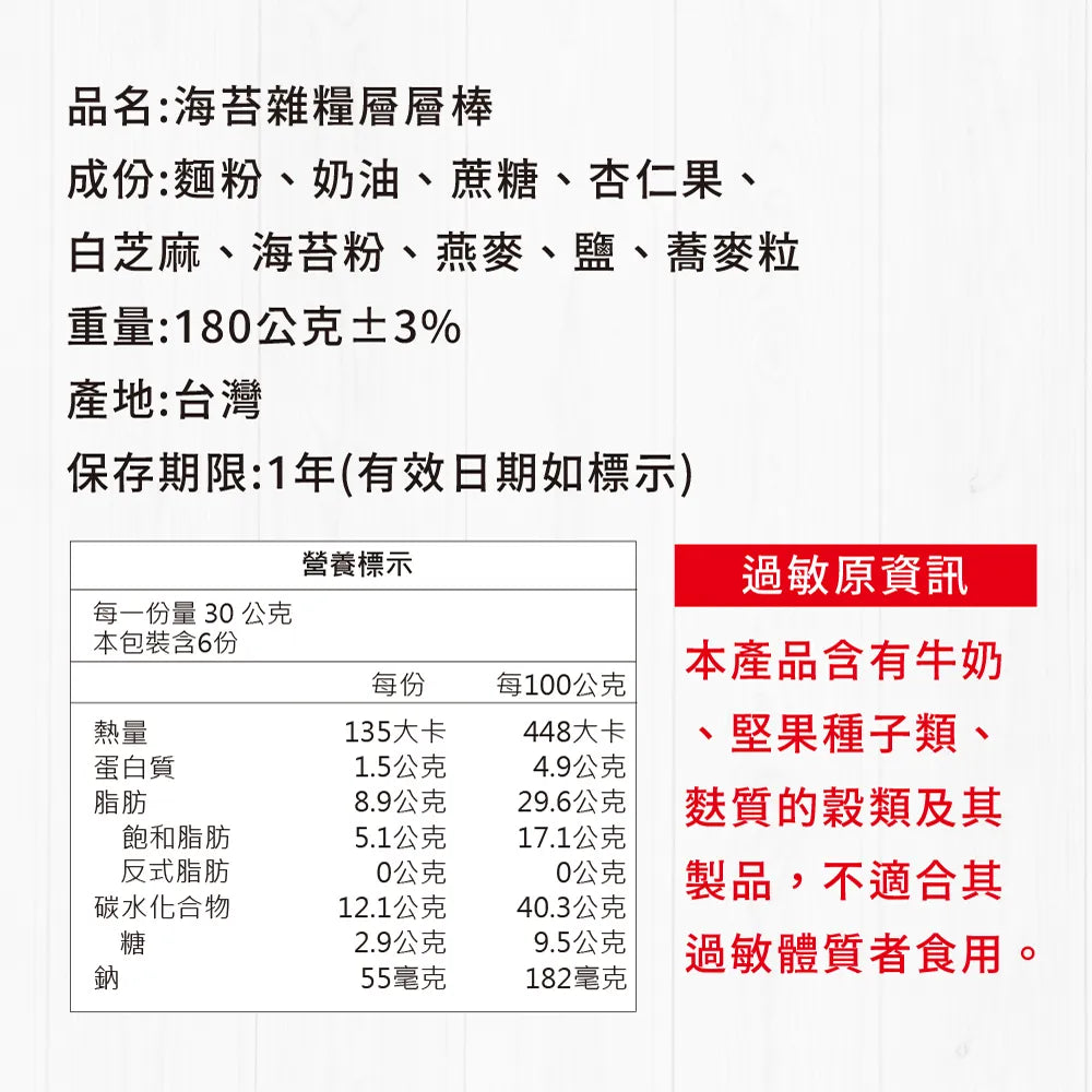 雜糧層層棒 7口味任選(180g/袋) 杏仁堅果棒 低負擔零食